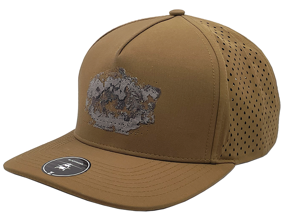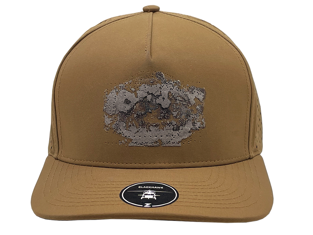 Huge sale on these caramel Blackhawk hats. These hats have patch and adhesive residue, and stitch holes were a patch was removed (2" x 3").  A great deal for the price!