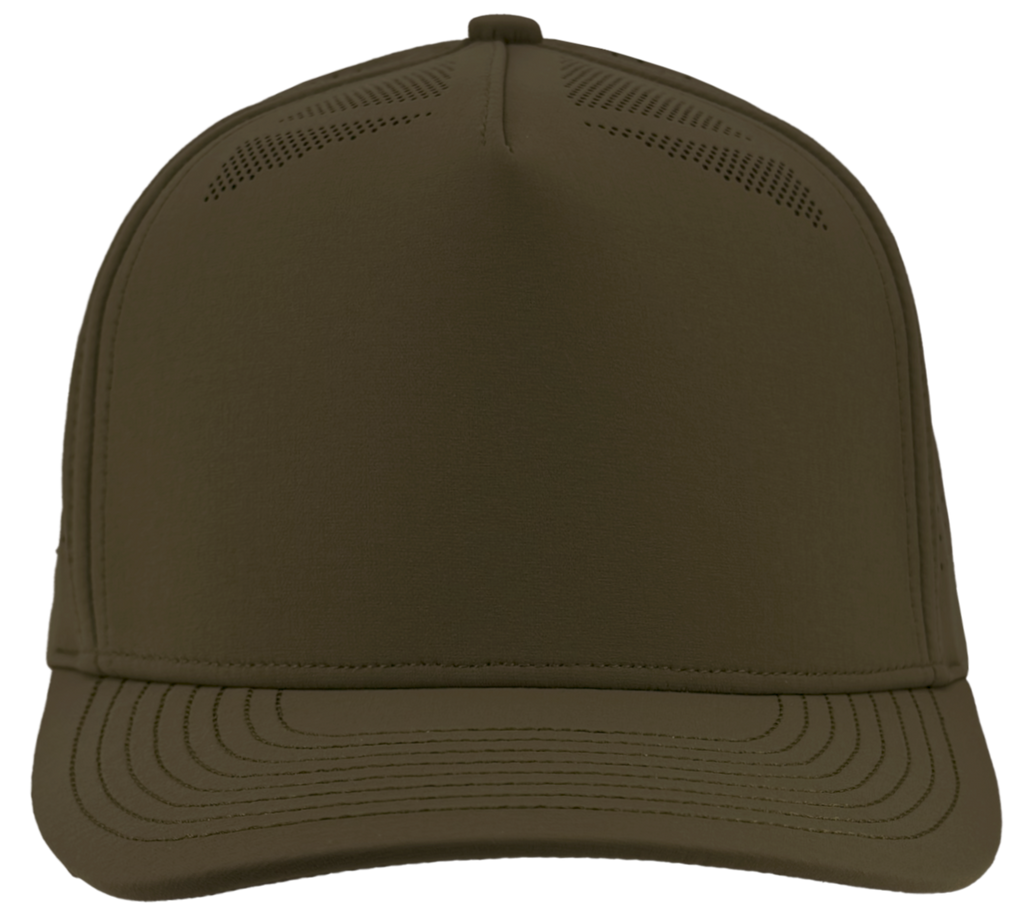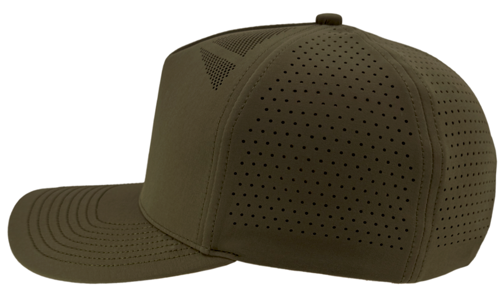 Perforated panels spandex fabric with 1 inch break for optimizing decoration space on side of hat